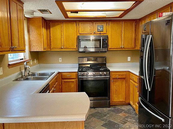 4 bed in Owasso! Fireplace, and cathedral ceiling in living. Stainless appliances in kitchen. Covered front porch & extended patio. Short walk to school. Roof new 7/18.