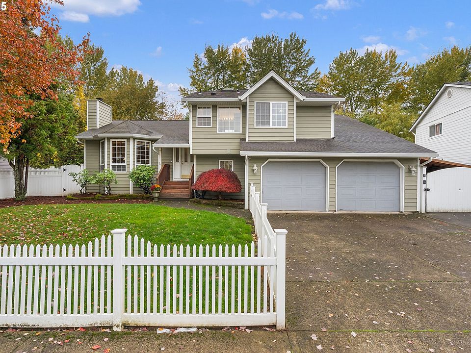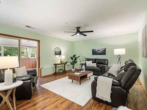 Step inside and feel the calm - the kind that only comes from sunlight streaming through to brighten vaulted ceilings and a view of nothing but trees behind you.Welcome to 8914 NE 28th Place, a home designed for how people actually live - with five true bedrooms, two-and-a-half baths, and plenty of space to stretch out, connect, or simply recharge.The main level greets you with an airy, light-filled layout where the living room opens seamlessly to dining, and a spacious kitchen making entertaining or weeknight dinners feel effortless. Vaulted ceilings lift your mood, while large windows bring the outside in - so even on cloudy days, the home still feels bright.Step out onto your covered deck and take a deep breath. That’s not traffic you hear - it’s the quiet of your private greenspace backdrop, a rare find that offers privacy, serenity, and room to watch the seasons change.Downstairs, you’ll find flexible living areas perfect for a media room, home gym, and that fifth bedroom you’ve always wanted for guests or your home office.And because smart living matters as much as beautiful living, this home comes equipped with solar panels that help lower monthly costs while reducing your footprint - practical, thoughtful, and future-forward.
