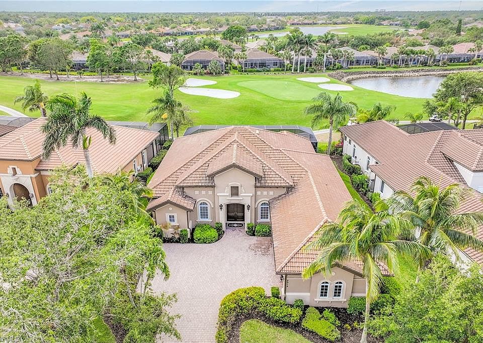 Located in the double-gated Majors at Lely Resort, this southern exposure three-bedroom-plus-den, three-full-bath, Greenbriar model estate home is a must-see! Highlighted by wide-open golf course views of the 16th hole of The Lely Mustang golf course, this spacious floor plan boasts a gourmet kitchen with walk-in pantry, plantation shutters throughout, three-car garage and ample entertaining space throughout. Private outdoor living is at its finest with soaring ceilings over the large covered lanai area, which seamlessly flows out onto the spacious deck surrounding the custom heated swimming pool with fully integrated spa. Come enjoy immediate access to the private membership at The Players Club & Spa which offers a fitness center, restaurant, Tiki bar and grill, billiards room, spa, resort-style swimming pools, large tennis and pickleball facility and so much more. Lely Resort is also home to three championship 18-hole golf courses. Come enjoy the lifestyle you desire!