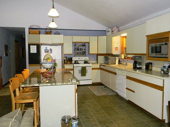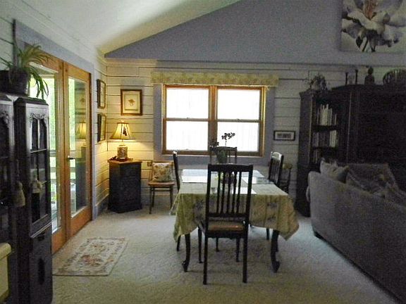 Well maintained log home a short distance from Fish Creek. Great country location with 3 bedrooms and 3 baths on the main level. Open design for the kitchen, living and dining area add to the charm of this home. Beautiful granite island can be used as a breakfast bar. Walk out on lower level with separate mother in law quarters. Lower level also has family room and owner's business with separate outside access. Screened porch for 3 season use and nice deck. Large detached 3 car garage plus additional storage on second floor. New furnace and roof in 2015 make this a great value. Plenty of room for a home office or studio. Apt rents for $600 month in walk out level.