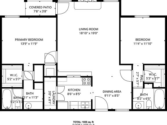 - Total interior livable area: 1,035 sqft