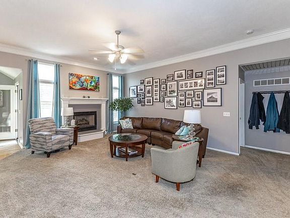 - Features: Carpet, Ceiling Fan(s), Fireplace