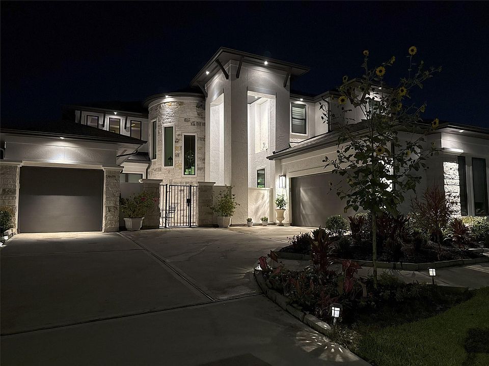 $30K PRICE DROP, STUNNING PERRY HOME!! Featuring a gated courtyard entry and soaring two-story foyer. A private home office with French doors and formal dining room set a sophisticated tone. Over $20K spent on designer blinds, the spacious family room offers 21-ft ceilings, a wood mantel fireplace, a wall of windows for abundant natural light. The chef’s kitchen includes a large island with seating, double wall ovens, 5-burner gas cooktop, walk-in pantry, and a butler’s pantry leading to the dining room. A bright morning area overlooks the backyard. The luxurious primary suite offers a wall of windows, dual vanities, soaking tub, glass-enclosed shower, and a generous walk-in closet. Upstairs, enjoy a game room, media room, guest suite with full bath, and additional secondary bedrooms. A second guest suite on the main floor adds versatility. Covered patio, utility room, mudroom, and a 3-car split garage with epoxy floors complete this exceptional home in the sought-after Valencia comm.