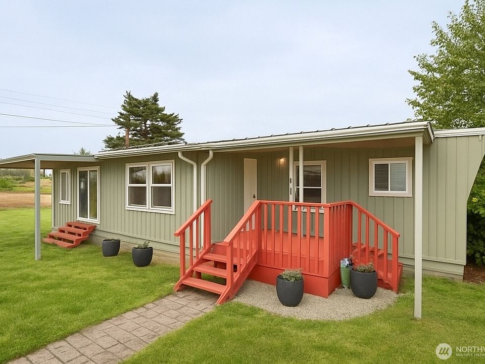 Enjoy a spacious, functional layout in this charming 1-bed, 1-bath single-wide, fully updated with modern finishes. Highlights include a brand-new kitchen, new windows, updated flooring, fresh blinds, washer/dryer, quartz shower, and stainless steel appliances. The home offers a 1-car carport, private storage unit, and a great yard perfect for relaxing or entertaining. Conveniently located near Longmire Park with easy access to downtown Yelm. Stylish, practical, and move-in ready—this home truly has it all! Lot rent is $895/month.
