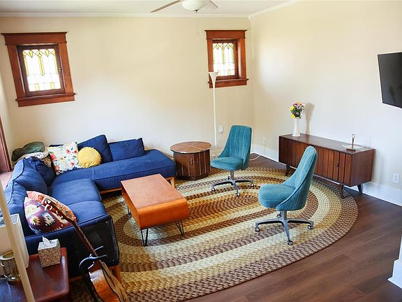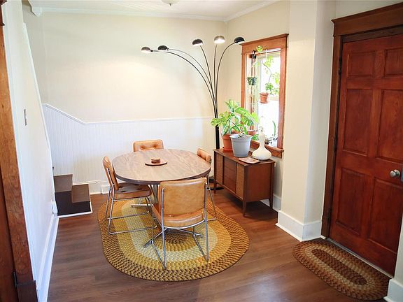 Charming brick home that was recently renovated so you have the best of both worlds!! Older architectural design with modern features. Covered front porch is ideal for sitting or you have the option of relaxing on the covered deck in the private rear yard. Kitchen was renovated 4 years ago with newer cabinets, flooring and stainless steel appliances. Many of the rooms still have original hardwoods under the laminate. Large main floor master with triple closets and 2 large rooms in the upper level currently used as bedroom #2 and office space. Add in the space in the partially finished walk out basement and you can really spread out in this home. Back yard is spacious and private with 1 car garage and storage shed. PLEASE DO NOT LET CATS OUT. THANK YOU:)