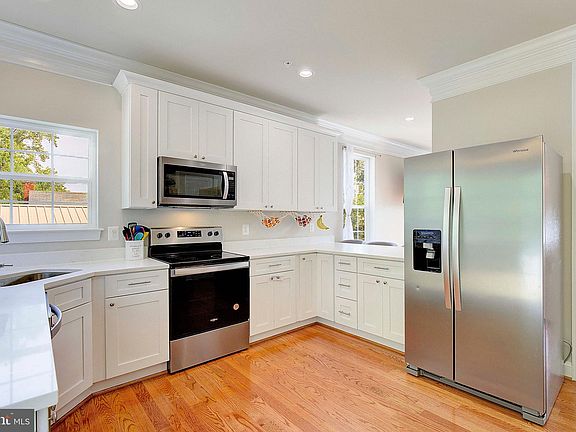 GORGEOUS 2021 Built home in the heart of the Town of North Beach!! An eat-in kitchen has beautiful white cabinets, Quartz countertops, stainless steel Whirlpool appliances and recessed lighting! Has four bedrooms, three full baths. All bathrooms are beautifully crafted with custom ceramic tile showers and floors. Primary en suite has a full bath with a built-in shower bench. Finished lower level includes the fourth bedroom and third full bath, a large family room and a separate laundry room with a door to the fenced backyard. Nice upgrades throughout, including triple crown molding and hardwood floors. Has off street parking and a 1-car extended garage that has room for storage in the back! Perfect location to walk to the the beach, boardwalk and restaurants! Also located within town limits allowing for a beach pass for up to five guests for each owner, and free trash and recycling service. This 3-yr old home is located in area of top rated schools and an easy commute to Joint Base Andrews, Annapolis and Washington DC!