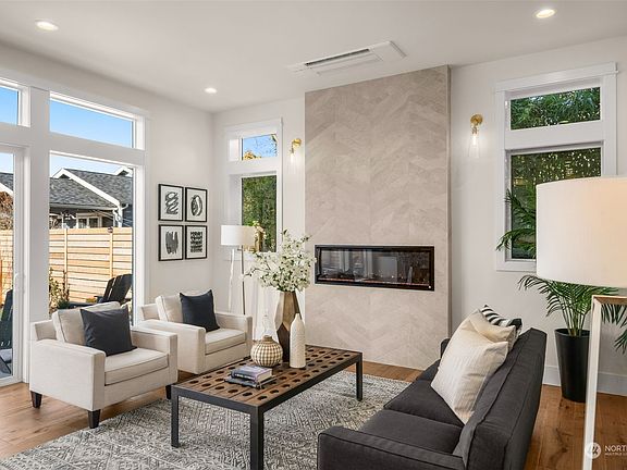 Walk into contemporary luxury every time you come home to this gorgeous newly constructed Maple Leaf residence. The oversized kitchen boasts Bertazonni SS appliances and floor to ceiling cabinets (11 feet!). Views of the Olympic mountain range create a peaceful backdrop from the light filled, west-facing windows and sunsets will spin awe from every vantage point including your 2 private decks. 5 bd, 2 with ensuite spa-inspired bathrooms, multiple bonus rooms for recreation, home workouts, office, theatre room – the possibilities are endless. The dedicated laundry room, garage with EV charging, fenced yard, all lend to the promise that everything in your home offers comfort or convenience. Come see for yourself and come home to Maple Leaf.