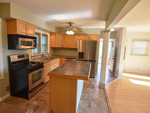 Fantastic Northside home with extra character, arched doorways, full brick with Walkout Basement & Great .69 acre Yard! This 2-bedroom, 1-bath home has a great location and a layout that just feels easy to live in. The open floor plan features a living room with laminate wood floors, a cozy wood pellet stove fireplace, and a seamless flow into the dining area with its built-in corner hutch and sliding doors to the deck. The kitchen offers a mobile island, solid-surface countertops, a handy serving bar, gas range/oven, microwave, and a brand-new dishwasher. Both bedrooms are big and on the main level, along with a full hall bath that includes a tub/shower and built-in linen closet. Off the kitchen, a breezeway used as the laundry room adds flexible space. The walkout basement offers even more room to spread out, with a family room that once doubled as a third bedroom, plus plenty of storage. A second laundry hook-up could be used here, and the attached 2-car basement garage keeps your vehicles sheltered from the weather while giving you easy access to the house. The yard is a highlight—private and peaceful with trees behind it, plus a driveway that wraps around back with a turn-around spot for easy coming and going. Updates are already taken care of for you: Presby septic system ‘22, and a new roof, furnace, and A/C in ‘23.