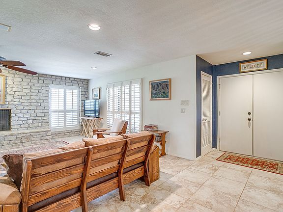 Prime Golf Course Location in Pecan Plantation! Nestled between the 16th green and 17th tee box of the Pecan Golf Course, this home sits on just under a half acre and offers one of the best settings in the community. Perfect location for watching golfers, deer, or morning walkers. Just a short golf cart ride to the clubhouse, you’ll enjoy sweeping views, established shade trees, and a park-like backyard. Recently painted, the home features a circular driveway, plantation shutters throughout, and an ideal two bedroom layout, each with its own full bath plus a powder room for guests. The living room showcases a striking stone wall and wood-burning fireplace, while large windows fill the home with natural light. The kitchen includes granite countertops and newer appliances, and wood flooring accents the bedrooms. Outdoor living is a highlight with covered and open patios, a brand-new backyard fence, and beautiful landscaping with a sprinkler system (heads replaced in 2024). Additional upgrades include a new roof, gutters, skylights, and a new HVAC system. Parking is a breeze with a two-car garage plus a golf cart garage. This is a rare opportunity to own a move-in ready golf course home in one of Pecan Plantation’s most desirable locations! Search YouTube 'Everything about Pecan Plantation Rebecca Van Buren' to learn about our amazing community.