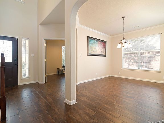 Looking for a home that has it all? Picture yourself relaxing by your own heated pool, hosting unforgettable gatherings under the stars, or whipping up dinner with the ease of gas cooking. Oh-and don't forget the 3-car tandem garage, all inside a private gated community! This 4-bedroom beauty is designed with space and comfort in mind. High ceilings and an open floor plan welcome you in, while a private study and two living areas give everyone room to spread out. The chef's kitchen is a true showstopper complete with a gas cooktop, built-in oven and microwave, granite counters, breakfast bar, and rich wood cabinetry. You'll love having both a breakfast nook for casual mornings and a formal dining room for special occasions. The primary suite is your personal retreat with two closets and a spa-inspired bath featuring dual vanities, a soaking tub, a walk-in shower, and even a makeup vanity. Secondary bedrooms are generously sized so everyone has their own space. Step outside and you'll find your backyard oasis with low-maintenance artificial turf and plenty of room to entertain. The front yard, on the other hand, greets you with lush green grass and great curb appeal. Added perks include a water softener and tons of storage throughout. All this, plus an unbeatable location in the sought-after NISD school district. Just minutes to Valero, UTSA, Medtronic, Medical Center, and USAA not to mention shopping and dining at La Cantera and The Rim.