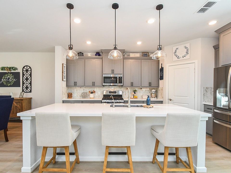 - Features: Breakfast Bar, Island w/ Cooktop, Kitchen open to Family Room, Pantry, Walk-in Pantry