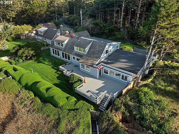 Motivated Seller. This very large Beach Front home features 4 bedrooms/4 bathrooms and parking for 8 vehicles. Sprawling deck overlooks the Pacific Ocean, Lighthouse Beach & Cape Arago Lighthouse. Watch all the ships come into the Coos Bay Harbor. This is a Beach front property with private direct access to Lighthouse Beach. The Kitchen is equipped with solid surface counter tops, new stainless steel appliances, appliance garage, cook island, amazing storage and Ocean Views. The main house features 2 master suites. The master suite on the main floor features a full wall of built-ins, includes the closet, a bathroom with a shower and a bonus room that makes a great office, or convert into a walk-in closet. The upstairs is the second master suite, measuring approx. 1,000 Sq. Ft, features unbeatable beach and ocean views, bathroom with a tiled shower/separate tub with vanity, walk in closet for her & a second closet for him. There is also an oversized bonus room which is currently being used as an office with a day bed. There is a SUITE behind the carport (approx. 500 Sq. Ft.) w/separate entrance, that features a microwave, mini-fridge, bathroom with tiled shower, bedroom & a large living area with impeccable Ocean views. The open floor plan LOFT (approx. 500 Sq. Ft.) over the garage also features a separate entrance, microwave, mini-fridge, bathroom with a shower and also has an amazing view of the Ocean. Previous owners offered their home as a Bed & Breakfast and rented out the Suite and the Loft. Contact the county for current and possible permits and uses of this property. Current owner enjoys the company of extended family in their large welcoming Beach House. 25 min to Bandon Dunes Golf Course. North Bend Airport is 15 min. Ocean wildlife to enjoy from your front yard!