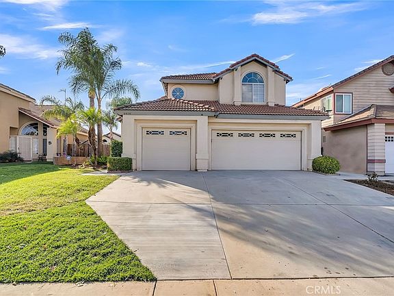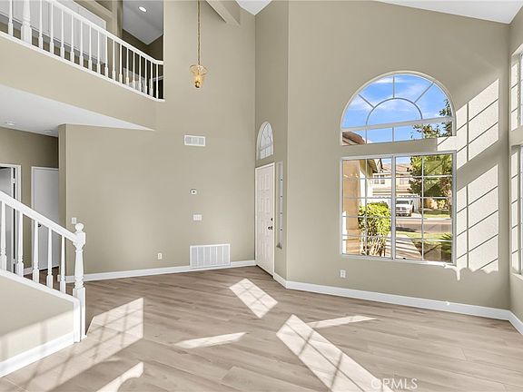This lovely Orangecrest Home is airy, bright and inviting. The main level entry showcases an openness which flows throughout the formal living and dining room. High vaulted ceilings, large windows with an abundance of natural light, beautiful vinyl plank flooring and an impressive staircase adds to the character and warmth of the home. The kitchen features white cabinetry, recessed lighting, quartz counters, stainless steel appliances, a corner window that frames the sink and a breakfast nook. The adjacent family room is accented by a wood burning fireplace and mantel. A downstairs bedroom would also make for a great office space. A full bath and laundry area with overhead cabinets complete the first floor. Retreat to the spacious Owner’s suite with a double door entry and walk-in closet. The en-suite bath features an expansive vanity with quartz counters, dual sinks, updated mirrors, a soaking tub, stand-in shower and tile flooring. Vaulted ceilings can also be found in the secondary bedrooms. An additional bathroom and a generous sized linen cabinet are located on the upper level. The serene backyard is ideal for entertaining with a covered patio, nice lawn space and mature landscaping. This wonderful home has a three-car garage and is located near Orange Terrace Community Park, top-rated public and private schools, convenient shopping and entertainment.