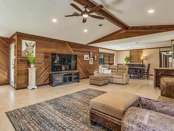 Situated on the 18th fairway of the beautiful Scenic Hills golfing community, this stunning all-brick home blends timeless charm with modern amenities. The grand circular driveway welcomes you, offering ample parking & a sense of arrival. The covered front porch invites you to relax & enjoy peaceful neighborhood views before stepping inside. The home boasts a spacious open-concept floor plan perfectly tailored for both everyday living & entertainment. Two expansive living areas provide flexibility to suit your lifestyle. The main living room features soaring vaulted ceilings, creating an airy & inviting ambiance. Adjacent to the living spaces, a formal dining area offers the ideal spot for hosting dinners. The chef’s kitchen is sure to impress with its granite countertops, sleek smooth-top range, brand-new dishwasher, & gleaming stainless-steel appliances. Abundant cabinetry & counter space make meal preparation & storage a breeze. The home includes four bedrooms, three of which offer walk-in or oversized closets. The primary suite is a true retreat, with a spacious walk-in closet & an updated en-suite bathroom featuring a modern vessel sink, an oversized soaking tub with tiled surround, & tasteful finishes. The fourth bedroom, uniquely positioned with a separate entrance, provides versatility as a dedicated home office, guest suite, or creative studio. The Florida room off the main living area offers a serene space to relax. Natural light & connection to the outdoors makes this space perfect for unwinding with a book, entertaining, or enjoying a morning cup of coffee. Throughout the home, tile flooring ensures easy maintenance & a polished look. Practical features abound, including a Rinnai tankless water heater & an oversized 25' x 25' double garage with extra storage space for tools & equipment. Located in a vibrant community this home combines comfort, convenience, & charm. Don’t miss the chance to see this exceptional property for yourself.