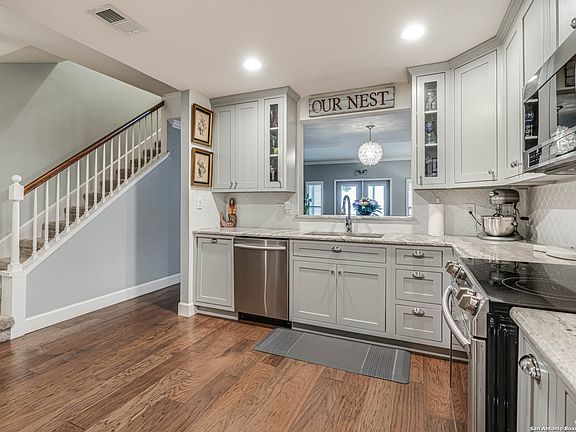 MUST SEE THIS HIDDEN GEM BEAUTIFULLY REMODELED TOWNHOME IN A QUIET & SECLUDED LOCATION! HOME HAS VAULTED CEILINGS W/CROWN MOULDING & RECENTLY INSTALLED DOUBLE PANE WINDOWS ALL W/PLANTATION SHUTTERS THROUGHOUT. 1ST FLOOR FEATURES TWO LIVING AREAS, ONE CAN BE STUDY/OFFICE W/GAS FIREPLACE HARDWOOD FLOORS THROUGHOUT ENTIRE DOWNSTAIRS, LARGE OPEN KITCHEN W/NEWLY INSTALLED CABINETS ALL SLOW CLOSE & QUARTZ COUNTERTOPS, STAINLESS STEEL APPLIANCES. HALF BATH DOWN FOR GUESTS, CLOSET & UTILITY/LAUNDRY RM OFF KITCHEN. UPSTAIRS FEATURES TWO LARGE BEDROOMS BOTH W/VAULTED CEILINGS, PLENTY OF CLOSET SPACE & TWO FULL BATHS ALL REMODELED WITH MARBLE FLOORS. HOA COVERS EXTERIOR MAINTENANCE, WATER, TRASH PICKUP AND MUCH MORE. MUST SEE! JUST PRICE DROPPED 10K!