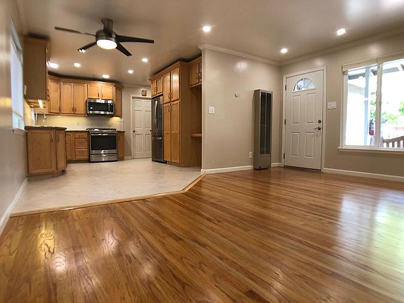 This large and charming single bedroom unit in a triplex is located in a highly desirable area of Mountain View with plenty of very nice features perfect for active folks who want to get away from high-density living and need a lot of storage space. This triplex is in a quiet residential area that is walking distance (about 5 min) to downtown Mountain View/Castro Street, biking distance to Google Campus and across the road from the newly renovated McKelvey Park. It has great features such as granite counter tops, solid-wood cabinets, stainless steel appliances, LED lighting and a Mr. Cool Mini Split Cooling and Heating system. The unit has an attached 2 car garage with plenty of storage space and is Electric Vehicle ready with a in-garage NEMA 14-50 charger outlet. Your private laundry room comes with a washer and dryer and is accessible from the kitchen through the garage. 1 year lease, which rolls into month-to-month after it expires. Need 1st month rent + deposit up front. Utilities: Water and Trash included. If you have a pet, let us know, we can discuss. 1 year lease, which rolls into mont-to-month after it expires. Need 1st month rent + deposit up front. Utilities: Water and Trash included.