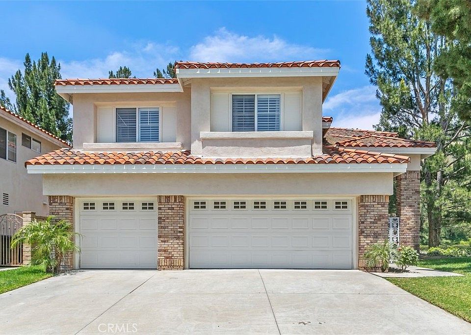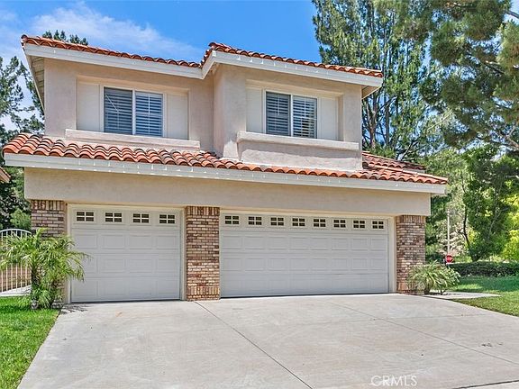 Nestled in the sought-after Jasmine Glen Community of Anaheim Hills, this stunning 4 bedroom, 3.5 bathroom residence awaits. Soaring voluminous ceilings are the focal point in the formal living and dining rooms, with neutral paint palette and a plethora of windows that infuse the home with natural light. The chef’s kitchen complete with stainless steel appliances, a five-burner stove, Cesarstone quartz countertops, a marble island, and a walk-in pantry has a garden window and picture window that bring the outdoors in. French doors from the formal living and dining area lead to a private backyard with several mature fruit trees. On the main level, you’ll find a warm family room with a fireplace, a convenient laundry room, a powder room, plantation shutters, and elegant polished granite flooring throughout. Upstairs, the primary suite beckons—a personal retreat with high ceilings, serene hillside views, and a spa-like bathroom featuring a dual sink vanity, soaking tub, separate shower, and a large walk-in closet. The spacious secondary bedroom includes an ensuite bath and a walk-in closet, while two additional bedrooms share a charming Jack and Jill bathroom. The attached three-car garage, beautifully finished with tile flooring, provides ample space for your vehicles and storage needs. This home is situated on a single loaded street with no neighbors behind. Highly ranked schools, parks, restaurants, shopping & freeway access are moments away. Welcome home!