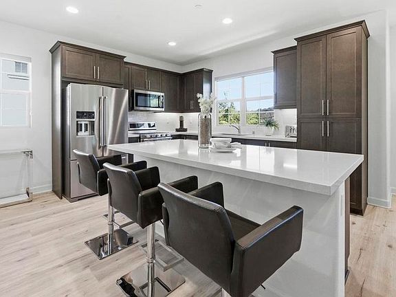 Experience modern luxury living at 892 Slate Street in the highly desirable Latitude community of Rancho Tesoro in San Marcos. This immaculate 3 bedroom, 2.5 bath, 1,933 sq. ft. residence blends sophisticated design with contemporary comfort. High ceilings and an open-concept floorplan create a spacious, light-filled interior enhanced by designer upgrades throughout. The gourmet kitchen features premium finishes and seamlessly connects to the living and dining areas creating a perfect environment for entertaining or relaxed everyday living. Featuring the largest floorplan in the community and refined details including quartz counters, luxury vinyl plank flooring, and upgraded window treatments elevating the entire home. Enjoy smart home technology, energy-efficient owned solar, tankless water heater, stackable laundry as well as an attached 2 car garage with plenty of room for storage. The gated HOA community features resort style amenities including pool, BBQ and picnic areas plus a tot lot for outdoor enjoyment. Ideally located near shopping, dining, top-rated schools with easy freeway access this exceptional condo embodies effortless luxury in the heart of San Marcos. 892 Slate Street is not to be missed!
