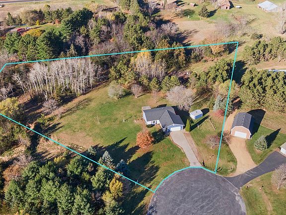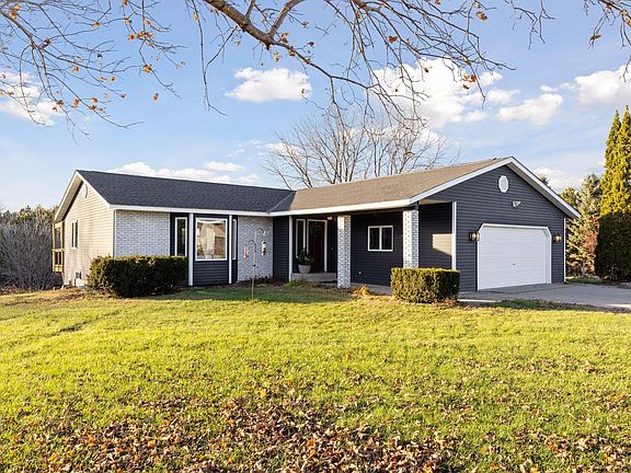 New roof in 2022! Located in a spacious cul-de-sac in the Hudson School district, this welcoming 3-bedroom, 2-bathroom, 2-car garage home sits on nearly 3.5 acres. Walk into an open concept living area with abundant natural light. The stylish finished basement has a wet bar and a gas fireplace, making it the perfect entertainment space. Watch the sunset off the back deck or patio, overlooking scenic views of a vast green space and woods. A garden is plotted out for you next to the storage shed.