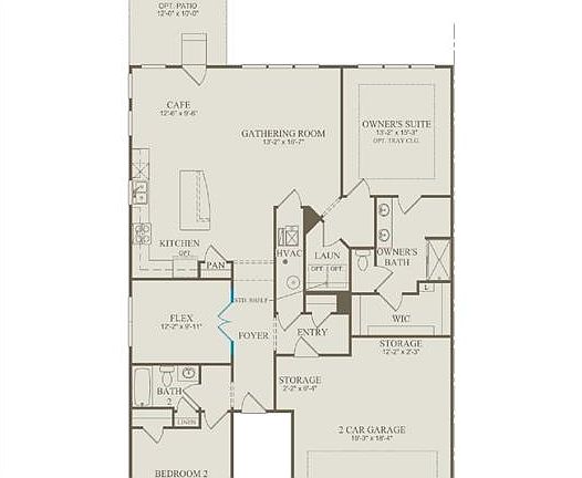 Featuring the best of both entertaining and private living spaces, the Abbeyville offers a retreat-like Owner's Suite in addition to an open layout for hosting guests. A spacious kitchen opens to the gathering room and cafe with porch access, and a large curved island offers space for extra seating in this new home design.
