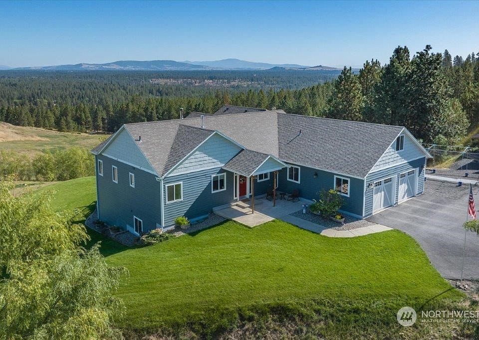 Welcome to your own retreat on 10 serene acres with stunning views of Mt. Spokane. This spacious 5 bed, 3.5 bath home offers an entertainer's dream kitchen featuring double ovens, prep sink, pot filler and granite countertops. Step onto your trex deck to a beautiful outdoor kitchen with a sink, grill, smoker, and a black stone making outdoor cooking a breeze. Enjoy the convenience of main-level living. Primary bedroom has 2 walk in closets, walk in shower with separate tub and ampler space with a double vanity. Large 2-door shop and potential for an ADU/office making it ideal for a home-based business or extra rental income. Has high grade backwashing filtration system, providing top quality water. 20 gpm well. 20 minutes to downtown.