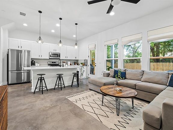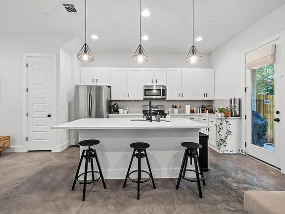 Modern 3-bedroom, 2.5-bath condo in the gated Aven Condominiums of South Austin. Featuring an open floor plan with high ceilings, quartz countertops, shaker cabinets, stainless steel appliances, and a large center island, this home is designed for both comfort and style. The primary suite includes vaulted ceilings, walk-in closet, and a spa-like bath with frameless shower and dual vanity. Two additional bedrooms and baths provide flexibility for family, guests, or office use. Enjoy a private fenced backyard, one-car garage, and low-maintenance living with HOA covering water, gas, trash, pest control, and lawn care. Ideally located near Moontower, Armadillo Den, and South Austin's top dining and entertainment. Move-in ready and perfectly situated for modern urban living. HOA is paid by the owner and includes water, gas, trash, and exterior pest control, as well as access to community common areas and services.