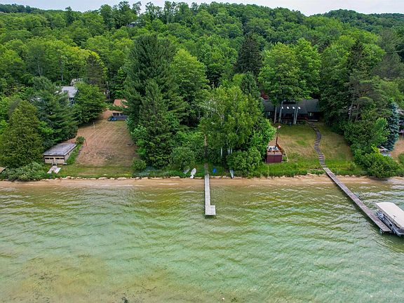 Glen Lake waterfront! Premium location on Big Glen Lake offered for the first time in decades with 90' of private frontage. Sandy beach, dock, swimming, boating, gorgeous sunsets, and star gazing will provide memories for generations to come. The lot has a natural landscape giving it an authentic Up North cottage feel and also provides ample privacy. The home is of the mid century craftsman era and features a water facing window-wall with sliders to a wonderful deck that leads to the short path to the amazing beach. 4 bedrooms and 3 baths provide plenty of space for everybody, and you will need it when they find out you have waterfront on Glen Lake. The interior features a cathedral ceiling, wood fireplace, a great room bathing in water views & natural light, efficient galley kitchen, main floor laundry, and two of the bedrooms could serve as a primary as they both have private baths. This home is filled with character & charm including timeless Cedar accents and is waiting to be returned to it's original splendor or to be created anew. This is a highly sought after property in one of the absolute best parts of Leelanau County.