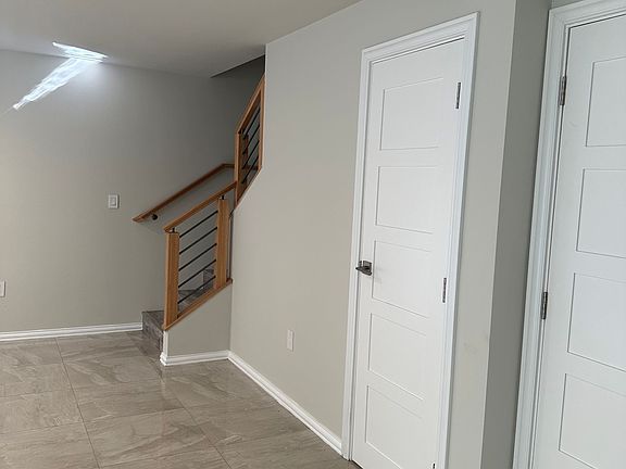 Stainless steel appliancesWood faux blindsPorcelain floorsModern wall bar showersWhite kitchen cabinets
