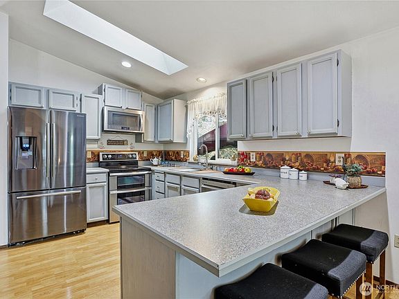 Just 1.5 miles from Historic Downtown Snohomish, this 3-bedroom, 2-bath home sits on 1 acre and offers the perfect blend of comfort and privacy. New carpet in LR with lots of natural light. Enjoy your Blackstone Wood Stove, or mini-split for heat/ AC. The eat-in kitchen with slider opens to two Trex decks, ideal for entertaining or soaking in your hot tub. Primary w/full bath, new vinyl flooring in bedrooms. Lower level offers a Great Bonus room with Office, plenty of space for everyone. Large 750 sqft 2 car garage with shop. RV parking with 50AMP power, septic and water hook ups. Fully fenced yard. Tankless HW, pump house, tool shed and large storage area for firewood. Close to shopping, schools, trails, AHS 1 Year Home Warranty.