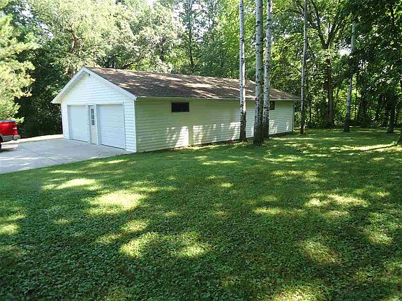 1+ acres. 3 bedrooms, 1 1/2 baths, 2+ car attached garage. Tile floor in kitchen. Oak floor in family room. 1st floor laundry. Eat in kitchen. Walk out lower level with rec room and bonus room. Newer roof and hot water heater. 30x42 extra building with 2 heated and insulated areas for storage or work shop. Beautiful treed lot with blacktop drive to extra building. Much more! Make an appointment now!
