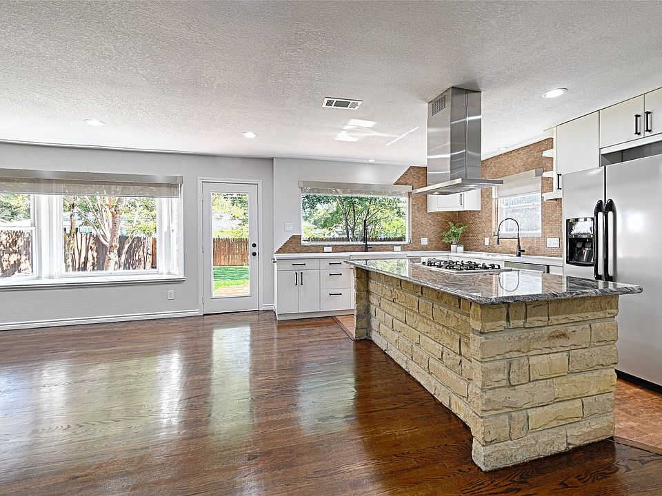 - Decorative/Designer Lighting Fixtures, Eat-in Kitchen, Granite Counters, Kitchen Island, Open Floorplan, Pantry, Walk-In Closet(s)