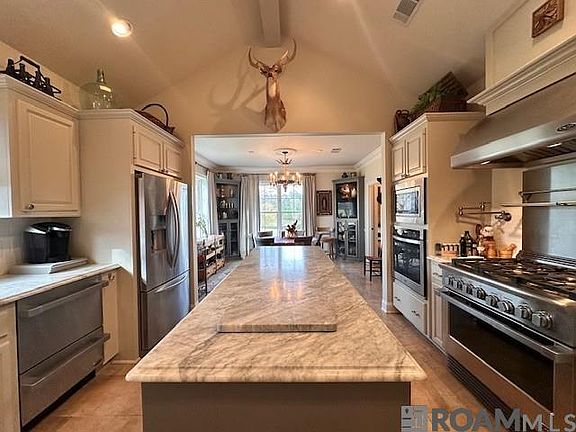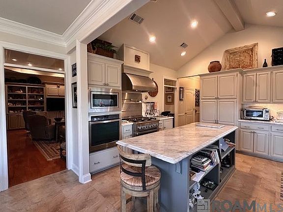 - Exterior features: Barbecue, Bedroom, Built-in Features, Ceiling 9'+, Ceiling Varied Heights, Crown Molding, Floor Covering: Brick, Floor Covering: Ceramic, Flooring: Brick, Flooring: Ceramic, Flooring: Wood, Game Room, Heating system: 2 or More Units, Ice Maker, In-Law Floorplan, Inside, Kitchen, Landscaped, Lighting, Living Room, Lot Features: Landscaped, Outdoor Grill, Outdoor Kitchen, Pets - No, Primary Bedroom, Smoke Detector(s), Tray Ceiling(s), Vaulted Ceiling(s), Washer/Dryer Con Elec, Window Treatments