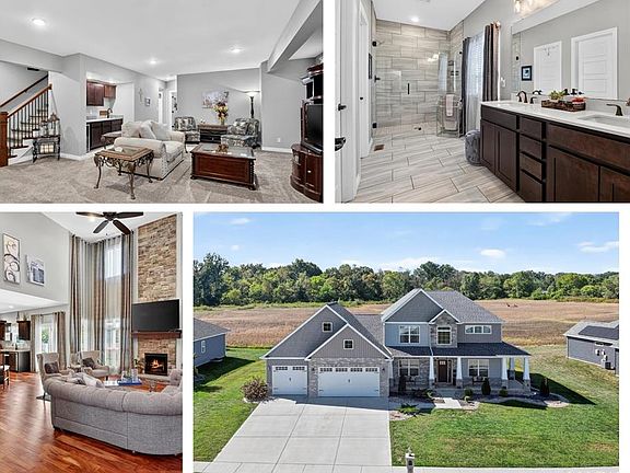 New roof (installed May 2025), custom window treatments, lower-level bar/kitchenette, gas stove, custom kitchen cabinet drawer slider inserts, tile backsplash, ceramic tile flooring in wet areas, laundry organization cabinetry, TV mount in garage, exterior yard access from garage, zoned HVAC, modern recessed and step lighting, water softener, dual-pump sump pump, and much more!