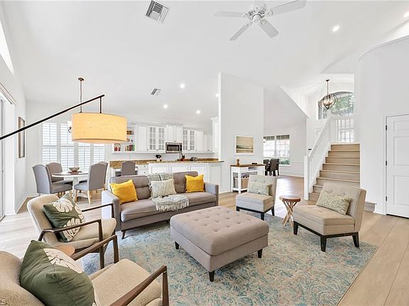 RARELY AVAILABLE - TOTAL REMODELED 3 BR+OPEN DEN , 3 BATH POOL HOME FOR RENT IN PELICAN MARSH. This Spectacular Home features many upgrades including - A Remodeled Kitchen with Granite Counters and Custom Cabinetry, All New Lighting and Fans, Electric Hurricane Shutters, New Patio Furniture, LVT Flooring Throughout, Walk In Closet and Newer Appliances. The Master Bathroom has a Travertine Shower, Jetted Tub, New Vanity, Tiled Shower and a Glass enclosure. The first floor Guest Suite has a Full Bath with an Updated Vanity. The upper level features a Guest Suite with a Fully Remodeled Bath plus a Loft/Den/Entertainment area. Beach Equipment is also available for your Beach Excursions. The renter has full access to the main Pelican Marsh Community Center with Lighted Tennis Courts, Pickleball, Bocce, State of the Art Fitness Center and loads of activities. Extra Fridge and Storage in the Garage. Minutes to the beaches, dining, entertainment, Whole Foods and shopping in Mercato.
