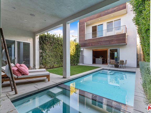 Private gated retreat in the heart of West Hollywood West! This stunning newer architectural home offers an open floorplan with excellent indoor/outdoor living, high ceilings and dramatic glass doors. The gourmet kitchen is complete with a large island, pantry and Miele appliances. The backyard is fully hedged with lush foliage and features a beautiful pool and spa with a covered cabana. Each bedroom consists of an en suite bath and a large balcony to maximize usable outdoor living space. The master suite overlooks the pool with gorgeous views of the Hollywood Hills. This home is equipped with state-of-the art built in speakers, security cameras, and alarm system and is located on a prime street with all of the best restaurants and shopping at your fingertips!