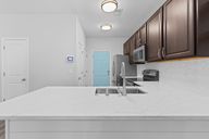 Stylish backsplashOpen layoutQuartz countertopsSmooth ceilingsNew garbage disposalWalk-in closet