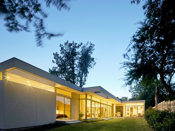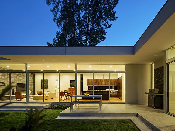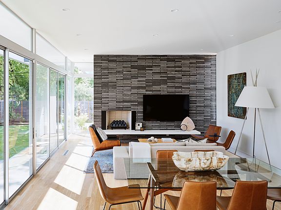Mid-century architectureClean linesOpen floor planFloor to ceiling tileSilhouette wine cellarExpansive walls of glassLinen closets