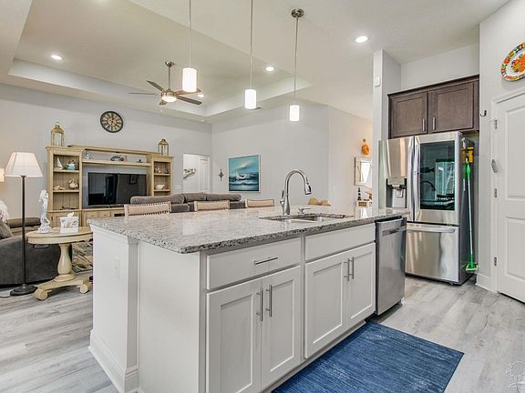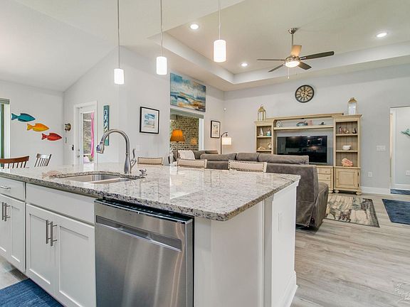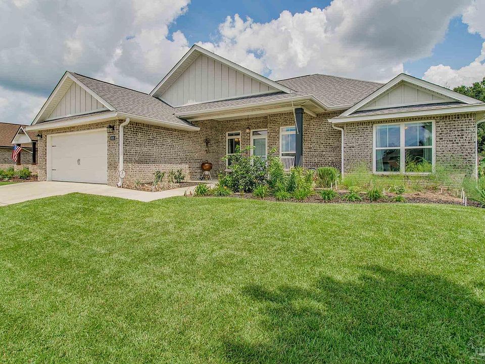 This stunning four-bedroom, two-bath home is in the peaceful Yellow River Ranch neighborhood. It is conveniently located just off Highway 87, a short distance from Interstate 10. It's only 20 minutes from the beautiful Gulf of Mexico beaches and 10 minutes from numerous boat ramps, including the Yellow River and Black Water River. For Military staff, Hurlbert Field is 40 minutes away, and Whiting Filed is 20 minutes away. Come join this wonderful family-friendly neighborhood that offers underground utilities, including 1-gigabit high-speed internet, a community pool, a pickleball court, a picnic area, and various weekly family activities. This home is better than new. Its expansive open-concept living area is bathed in natural light from large windows, creating a warm and inviting atmosphere. The modern kitchen features sleek granite countertops with a tile backsplash, cabinets with pull-out stainless-steel drawers for organizing your dishes, stainless steel appliances, a spacious pantry, and a breakfast bar, making it ideal for hosting guests. Step into the oversized screened-in back patio, which provides stunning views of the serene tree line. It's perfect for morning coffee or relaxing with your family and guests. The spacious primary suite is a sanctuary with blackout cellular shades for sleeping in. The primary closet features a custom closet system with a few hidden secrets that any woman would love. The elegant en-suite bathroom is spacious, with a garden tub and a large shower complete with a rain shower head. On the opposite side of the home, there are 3 large bedrooms with 3 spacious closets, as well as a full bath, a formal dining area and exceptional pre-built cabinets in the laundry room with dryer connections compatible with both gas and electricity. The home is wired for surround sound, a Nest, and an Alarm system. It has 1 gig of high-speed fiber in the living room and two bedrooms for those who work at home or livestream.