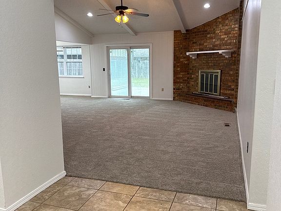 Large fenced backyardBrand new carpetCozy fireplaceStainless steel appliancesNew ceiling fansGranite countertops