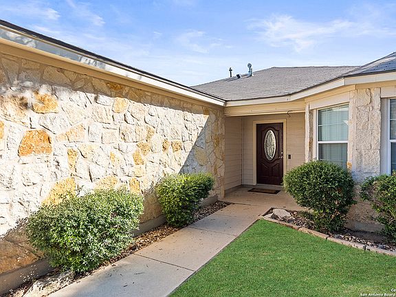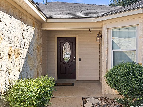Nestled in the conveniently located Oaks of French Creek, this beautifully updated single-story home perfectly blends thoughtful updates you will appreciate, and charm you can only find in an established community. Inside, you'll find an inviting open floor plan with vaulted ceilings, travertine tile and luxury vinyl plank throughout the living areas, and a stunning kitchen renovated from top to bottom! The eat-in kitchen with large bay windows offers beautiful white cabinets and quartzite countertops with an island for additional counter and storage space. The spacious master suite has been recently updated with a brand new large format tile shower. Step outside to enjoy the expansive craftsman style covered porch, ideal for entertaining and relaxing year-round with a view of your private, oversized backyard. One of few quarter acre lots in the neighborhood, there's plenty of room for a pool, sport court, and more. Recent upgrades also include a brand new state of the art water softener, making this home truly move-in ready. Located close to UTSA, La Cantera, USAA, the Medical Center, Valero, and O.P. Schnabel Park, this property offers both convenience and charm in a desirable Northwest San Antonio location.