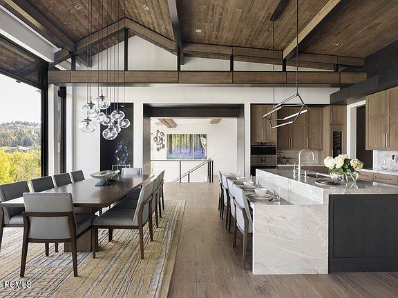 With panoramic views spanning Deer Valley, Park City's Old Town, and the Uinta National Forest, this private escape is designed for both relaxation and entertainment. The gourmet kitchen with a butler's pantry flows effortlessly into an expansive heated, covered deck, with a built-in BBQ and fire pit. Whether you're unwinding after a day on the slopes or watching the sky ignite in shades of purple and orange during the alpenglow sunset, this home offers an unparalleled mountain experience.