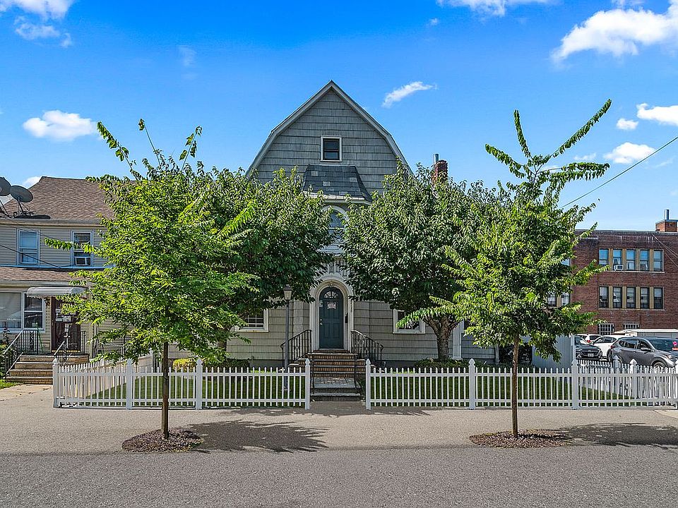 Built with character and purpose, the property features generously sized rooms with original wood detailing, and oversized windows that bathe the home in natural light. The layout is both functional and flexible, with multiple common areas, bedrooms on each floor, and separate entrances that lend themselves to various configurations. The spacious kitchen and additional first floor area offers excellent potential for redesign, and the bathrooms are well distributed across all three floors to accommodate easy access and comfort.