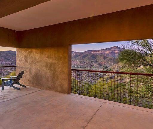 Come discover nature at its best in Aravaipa Canyon. This is a great opportunity to own your own private oasis in one of the most beautiful canyons in Arizona. Architecturally designed to blend into the hills above the creak below, this custom-built contemporary home with its deep porches, patios and outdoor jacuzzi and shower, beckoning you to spend as much time outside as inside. The home comes fully furnished. Concrete floors and countertops accent the kitchen and bathrooms. Enjoy the Japanese soaking tub after a hike into the designated wilderness area.