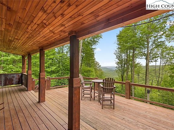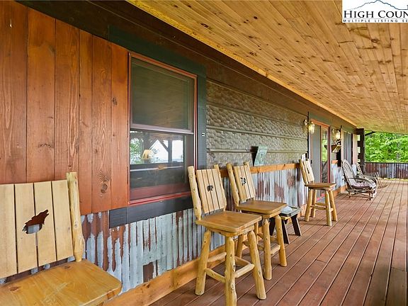 Welcome to your charming slice of Beech Mountain! Nestled in the Chestnut Falls community (NO Beech Mountain city taxes) on 8 acres of serene countryside, this FULLY FURNISHED 2 bedrooms/2-bathroom cabin offers the perfect blend of rustic charm and modern-day comforts and is ready for you to move in. As you approach the property, you're greeted by the classic allure of mountain living, complete with a welcoming wrap-around great for enjoying the long-range mountain views. Step inside, and you'll find a cozy yet spacious living area featuring a wood-burning fireplace, creating a warm and inviting ambiance on chilly evenings. The cabin boasts two bedrooms and two bathrooms and features an open kitchen, living and dining area. Whether you're hosting guests (short-term rentals are allowed) or enjoying quiet evenings at home, this layout offers both privacy and comfort. In addition to the main house, you'll discover an unfinished basement and a detached studio, ready for your finishing touches. Despite its secluded feel, this property is conveniently located less than 2 miles from Buckeye Lake and Recreation Center or a 5-mile drive to Fred’s General Mercantile. Whether you're seeking a peaceful retreat or a convenient home base for exploring all that Beech Mountain has to offer, this cabin embodies the essence of rustic elegance and tranquility. {Schedule you're showing today!}