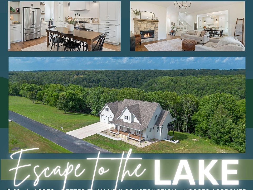 Welcome to 893 Hidden Springs--a breathtaking, HGTV-worthy custom estate on 5+/- private acres in the exclusive gated community of The Meadows at Hidden Springs. Designed with intention and built with elegance, this home blends high-end finishes, smart functionality & timeless style to create an extraordinary living experience.From the moment you arrive, you'll be captivated by peaceful wooded views, an expansive backyard ideal for stargazing & campfires, & impeccable quality throughout. Inside features soaring 10-ft ceilings, stunning engineered hardwoods, & a layout designed for both gathering & privacy.At the heart of the home is a dream chef's kitchen, built for exceptional everyday living--featuring a professional ZLINE gas range, full suite of ZLINE appliances, leathered granite counters, oversized dine-in area perfect for large gatherings, wet bar/coffee station & optional butler's pantry nook. Adjacent is a sunlit office ideal for working remote. The main living room offers a cozy fireplace, guest half bath, & walk-out to the covered back deck--blurring the lines between indoor/outdoor living.The private owner's wing is a true retreat, w/ a second foyer, vaulted ceilings, direct deck access, & spa-style ensuite featuring cultured marble walk-in shower, soaker tub, water closet & oversized walk-in closet. Also on the main level: an oversized 3-car garage w/ 10-ft doors, plus spacious laundry/mudroom w/ added storage.Upstairs: two charming Jack & Jill bedrooms, each w/ its own study nook, central full bath w/ clawfoot tub/shower combo, playful living space & great storage.Downstairs: a massive walk-out family/rec room w/ wet bar, gaming zones, peaceful wooded views, covered patio, 4th bedroom, full bath, storm shelter & bonus workshop or hobby room.And yes--chickens welcome! Hidden Springs offers the perfect mix of freedom & protection, just 15 min to Table Rock Lake. New cherished memories await @ 893 Hidden Springs Ln.