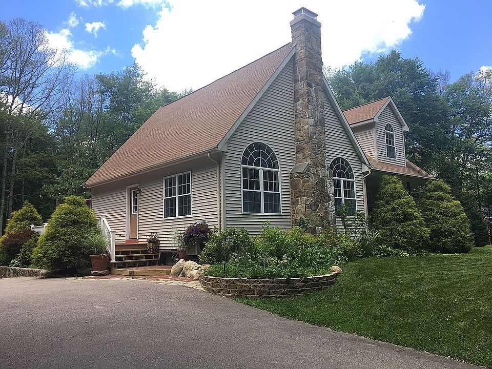 Stunning contemporary set on 2.8 acres of total privacy! Unique features include great room with soaring wood ceiling and exposed beams. Loft area has many potential uses such as office/nursery/den. Beautiful yard and landscaping, special home!