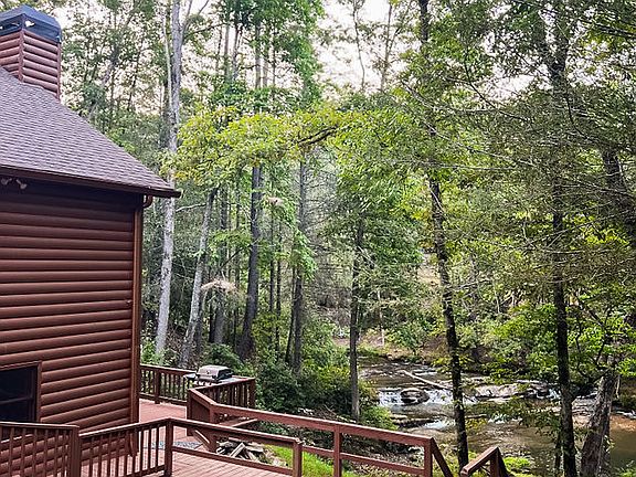 Discover a rare slice of North Georgia paradise with direct Town Creek frontage and your very own waterfall. The moment you arrive, the rush of the shoals welcomes you-an incredible, soothing soundtrack that follows you through every room of the home. Known for gold panning, swimming, and even catching dinner, Town Creek is the ultimate backdrop for outdoor lovers and relaxation seekers alike. Perfectly positioned on 2.09 secluded acres, the main home sits right on the water, offering picture-worthy views in every direction. Inside, you'll find a spacious layout highlighted by a rock wood-burning fireplace, a generous primary bedroom, and a separate laundry room for added convenience. Upstairs provides a flex space ideal for extra sleeping quarters, a quiet office, or a cozy lounge-a great bonus for hosting family and friends. Step outside to enjoy the back deck overlooking the creek, where mornings feel slower and evenings feel warmer. An outdoor fire pit is perfectly placed for s'mores, storytelling, and truly unwinding. A second structure on the property-ideal for a future carriage house or guest cottage-is ready to be finished to your needs, offering even more potential for living space, rental income, or a private retreat for visitors. Whether you're looking for a weekend escape or a full-time haven, this property delivers unmatched serenity, natural beauty, and the calming escape you've been craving from the hustle and bustle of everyday life. Town Creek living doesn't get better than this.