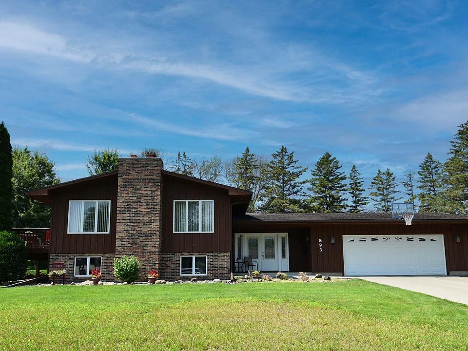Welcome home to this move-in ready, spacious, and immaculately maintained four bedroom, two bath split entry home. Huge foyer has room for family and guests plus a walk out to backyard patio. Upper level features open dining/living, area with walkout to deck overlooking a large well-maintained yard, Kitchen has loads of cabinets, double ovens, center Island flat top, and three bedrooms on one level. Finished lower level features a large family room with fireplace and wet bar, bedroom, bathroom and laundry/utility room with extra storage and updated mechanicals. The oversize two car garage features heat, air, work and storage areas. All this located on a hard to find 1/2 acre+ lot.
