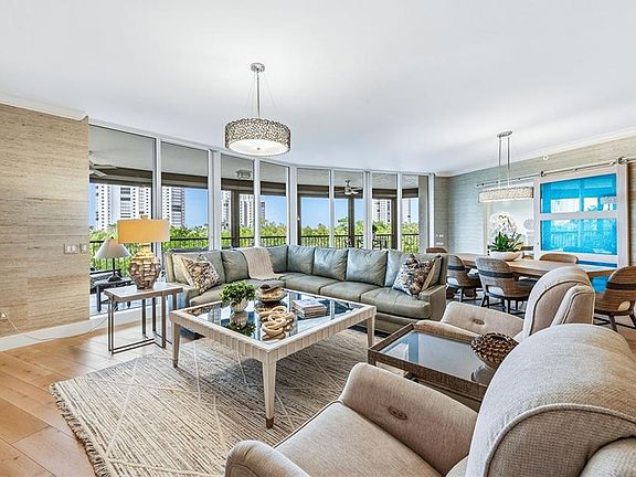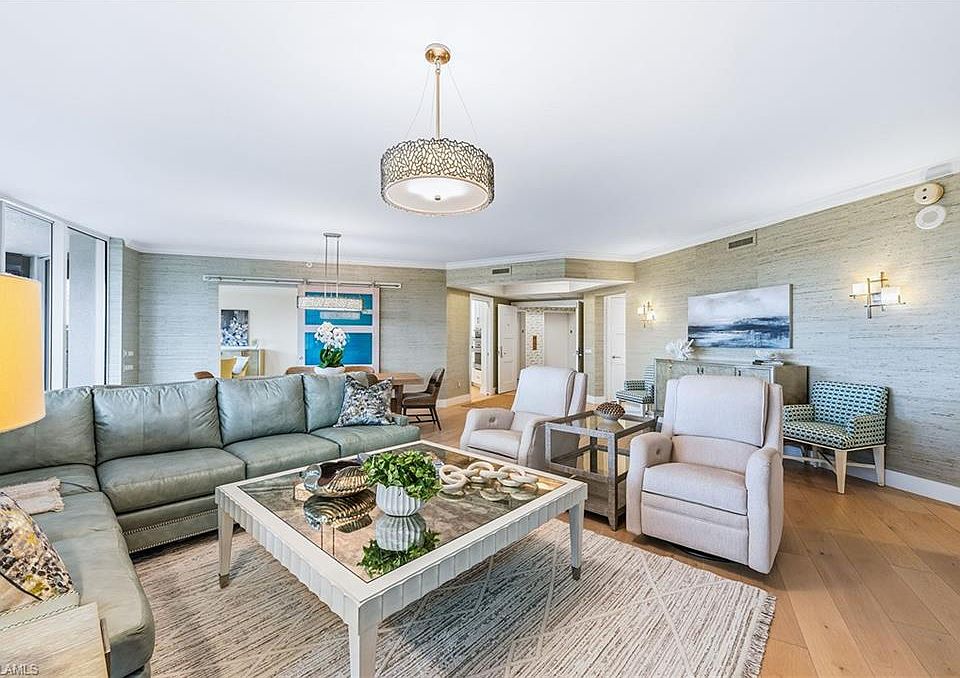 In the heart of Bay Colony, Naples exclusive beachfront enclave, this elegant residence in Salerno captures the essence of refined coastal living. Every detail has been carefully considered in this furnished three-bedroom, three-bath residence, reflecting timeless sophistication and quiet luxury throughout its spacious design. Wide-plank white oak flooring unites the open, light-filled living spaces, while designer wall treatments and bespoke finishes lend warmth and character. The great room unfolds to a wrap-around lanai through an expansive wall of sliding glass doors, framing tranquil views and the golden hues of Naples celebrated sunsets. The kitchen has been meticulously reimagined with solid-wood cabinetry, quartz countertops, and a professional suite of Wolf and Sub-Zero appliances, offering beauty and performance. The private primary suite serves as a tranquil sanctuary, featuring a spa-inspired bath and a custom-fitted walk-in closet. Two additional bedrooms, each with an elegantly updated bath, provide comfort and privacy for guests. In addition, a private elevator foyer and two parking spaces in the under-building garage provide convenience and privacy. Within Salerno, residents enjoy beautifully renovated common spaces, a resort-style pool and sun deck, and a well-appointed fitness center. Beyond the building, the Bay Colony experience unfolds with unrivaled privileges such as a private beach club with elegant dining, beachfront pool and full-service beach attendants, as well as a dedicated racquet center. A short distance away, The Ritz-Carlton Naples extends five-star dining options, while Pelican Bay invites exploration with its scenic recreational and biking paths, two beachfront restaurants, and more. This residence offers a rare opportunity to live in one of Naples desired coastal communities, where privacy, elegance and a world-class lifestyle come seamlessly together.