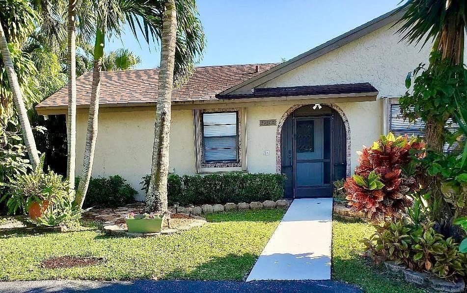 Beautifully renovated and immaculately maintained single story 2 bedroom 2 bath villa in Boca Barwood. This spacious unit features vaulted ceilings and ceramic tile throughout. The open concept kitchen is perfect for hosting guests with a stunning oversized peninsula bar, newly installed white shaker cabinets, Granite countertops and SS appliance. Both bathrooms have been beautifully updated with new vanities. Enjoy effortless entertaining on the Travertine screened patio perfect for BBQs or just relaxing. You will find an outdoor shed for additional storage. The community offers a clubhouse with a community pool, tennis and cable.
